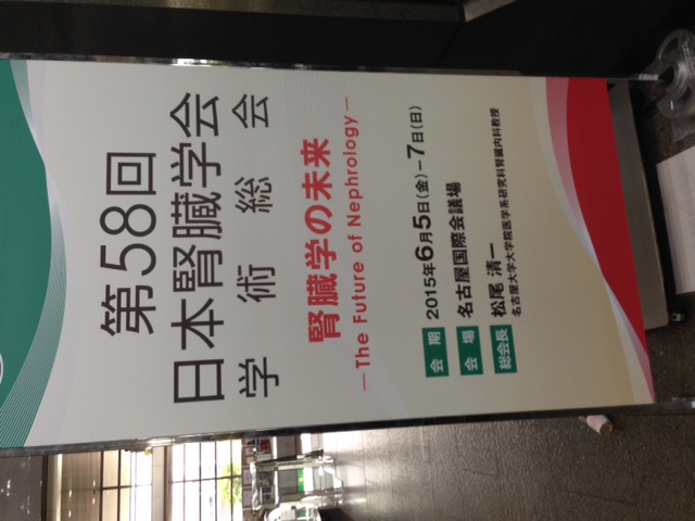 毎年参加する日本腎臓学会が名古屋で開催されました。近いと宿泊代もかからないので本当にありがたいです。日本腎臓学会は人の学会ですが、本当に勉強になります。毎年楽しみにしている学会です。