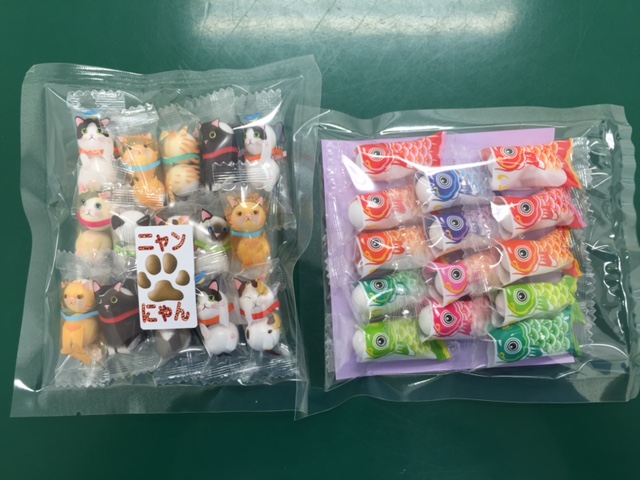今日は遠方よりお越しの飼い主さんからお菓子を頂きました。とても美味しかったです。しかし、最近のお菓子は可愛いですね。