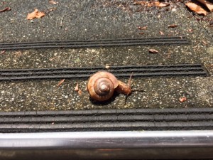 今日は徹夜でした。眠いです。打診の先生とバトンタッチ。『早く布団に入りたい・・』と思いながら歩いていると、カタツムリ。何時以来でしょうか、カタツムリを見たのは。ついつい写真を撮ってしまいました。ゆっくりですが、着実に道を進む姿は人生そのもの、すばらしい、笑。